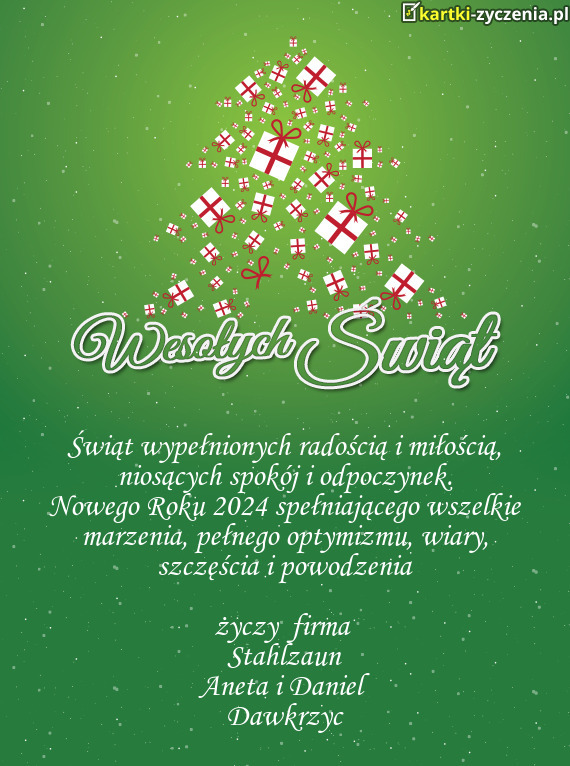 Ŭyczy firma Stahlzaun Aneta i Daniel Dawkrzyc - Gotowa Kartka bożonarodzeniowa