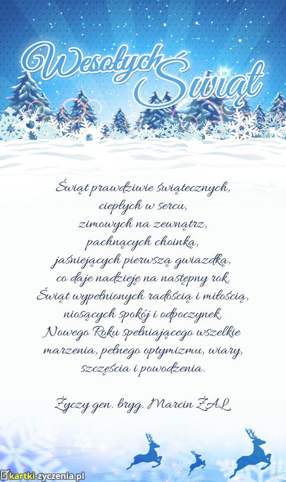 ūyczy gen. bryg. Marcin ŻAL - Gotowa Kartka bożonarodzeniowa