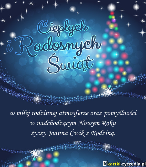Ŭyczy Joanna Ćwik z Rodziną - Gotowa Kartka bożonarodzeniowa