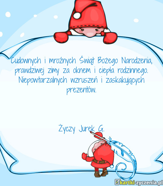 ūyczy Jurek G - Gotowa Kartka bożonarodzeniowa