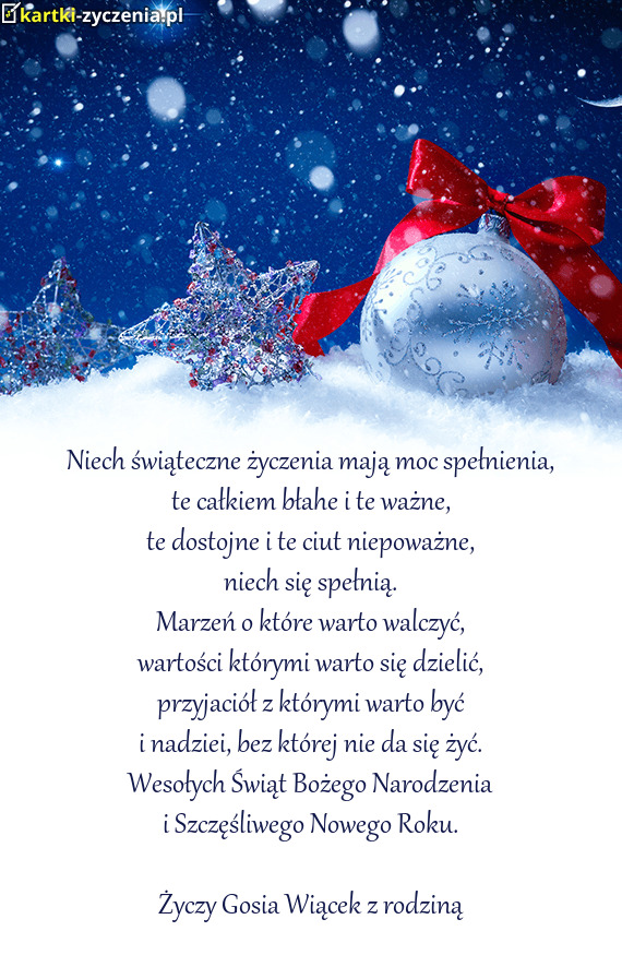 ūyczy Justyna z mężem i dziećmi - Gotowa Kartka bożonarodzeniowa