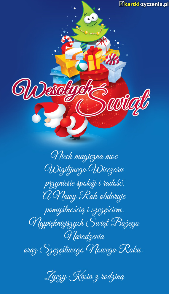 ūyczy Kasia z rodziną - Gotowa Kartka bożonarodzeniowa