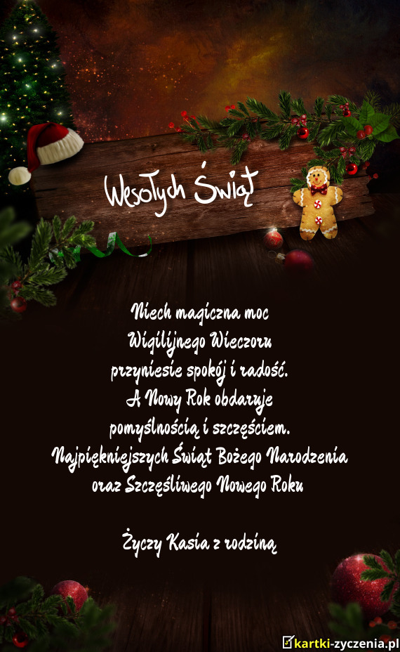 ūyczy Kasia z rodziną - Gotowa Kartka bożonarodzeniowa