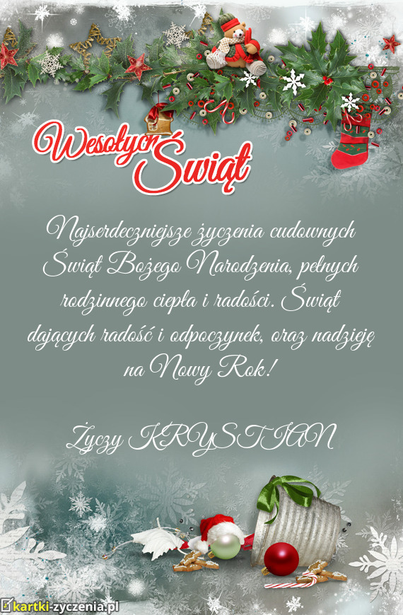 ūyczy KRYSTIAN - Gotowa Kartka bożonarodzeniowa
