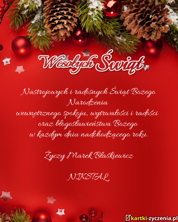 ūyczy Marek Błaśkiewicz - Gotowa Kartka bożonarodzeniowa