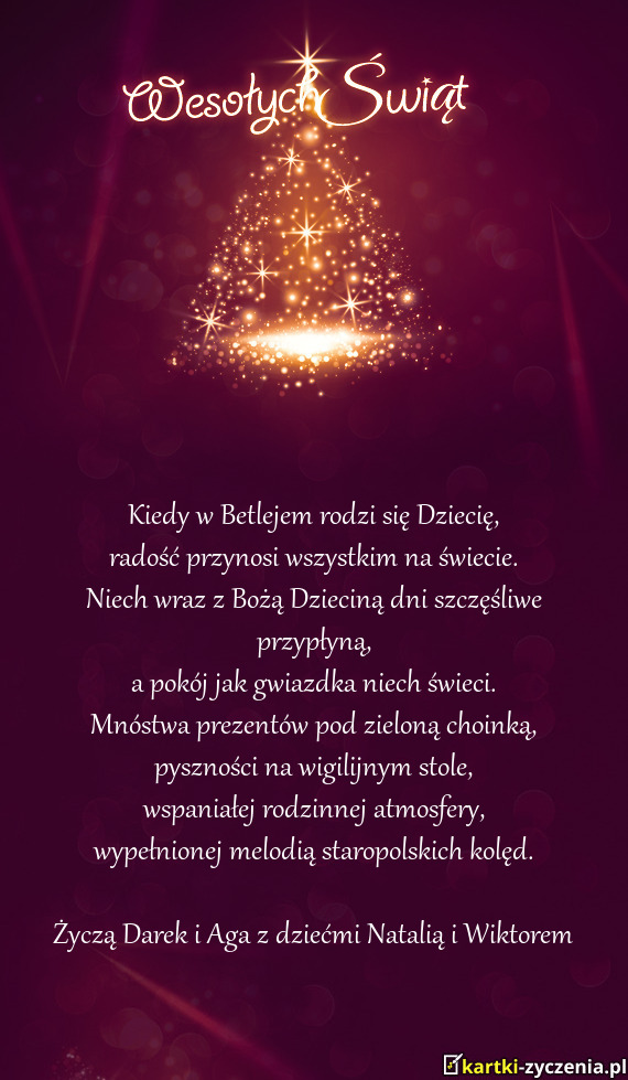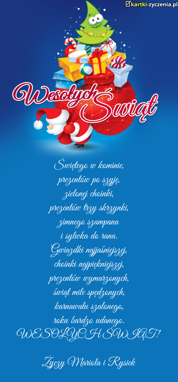 ūyczy Mariola i Rysiek - Gotowa Kartka bożonarodzeniowa