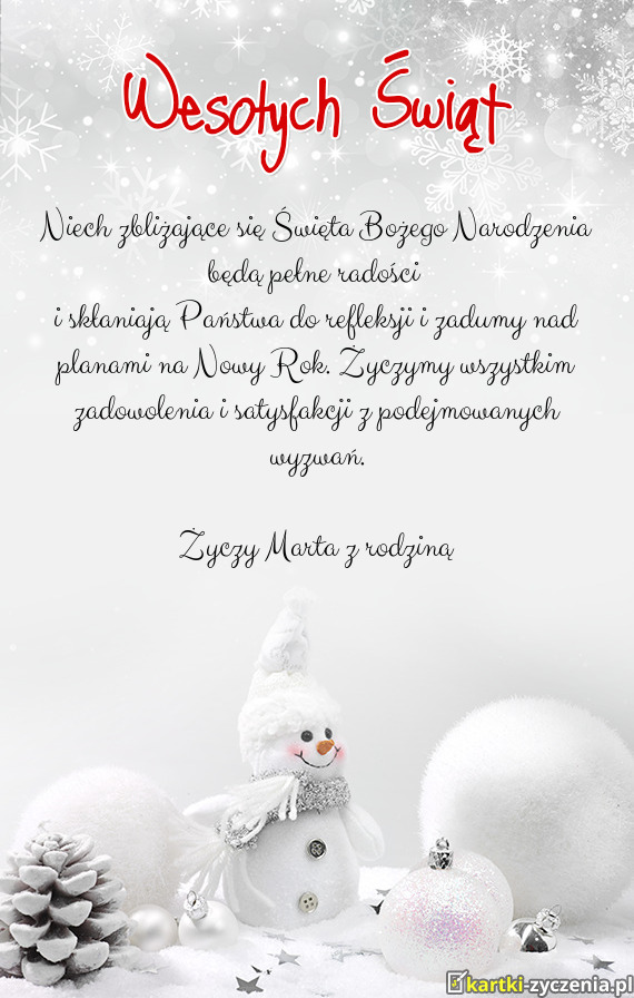 ūyczy Marta z rodziną - Gotowa Kartka bożonarodzeniowa