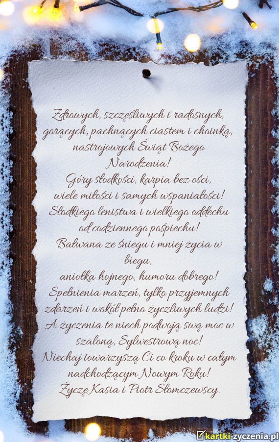 ūyczy Mikołaj i Sandra - Gotowa Kartka bożonarodzeniowa