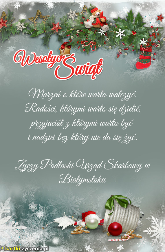 ūyczy Podlaski Urząd Skarbowy w Białymstoku - Gotowa Kartka bożonarodzeniowa