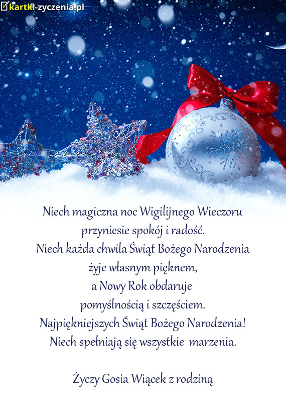 Najserdeczniejsze życzenia cudownych Świąt Bożego Narodzenia, pełnych rodzinnego ciepła i radości. Świąt dających radość i odpoczynek, oraz nadzieję na Nowy Rok!