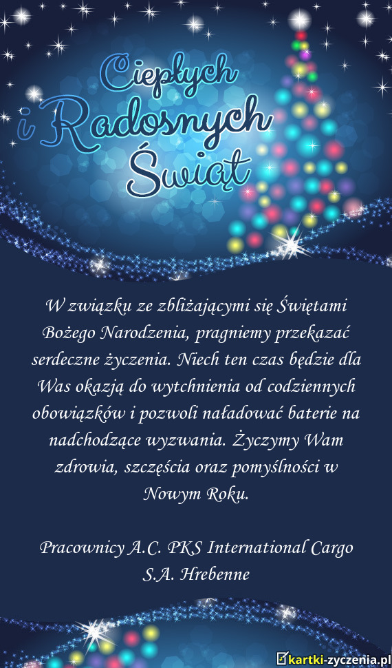 Najserdeczniejsze życzenia cudownych Świąt Bożego Narodzenia, pełnych rodzinnego ciepła i radości. Świąt dających radość i odpoczynek, oraz nadzieję na Nowy Rok!