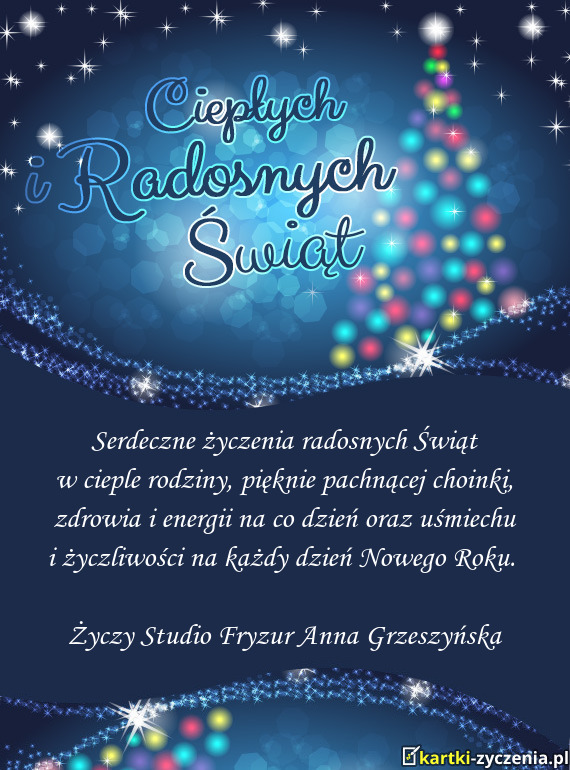 ūyczy Studio Fryzur Anna Grzeszyńska - Gotowa Kartka bożonarodzeniowa