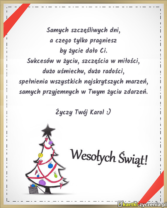 ūyczy Twój Karol :) - Gotowa Kartka bożonarodzeniowa