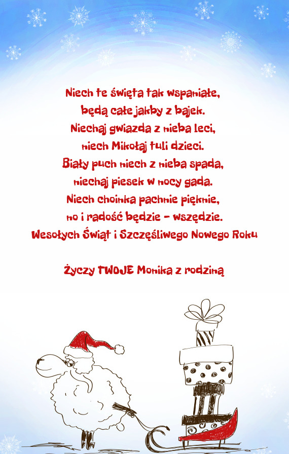 ūyczy TWOJE Monika z rodziną - Gotowa Kartka bożonarodzeniowa