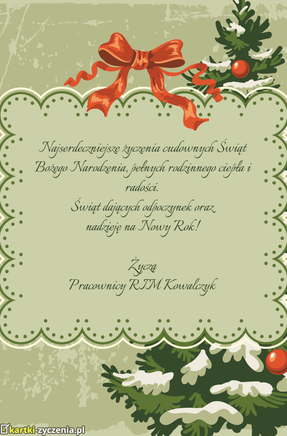 Najserdeczniejsze życzenia cudownych Świąt Bożego Narodzenia, pełnych rodzinnego ciepła i radości. Świąt dających radość i odpoczynek, oraz nadzieję na Nowy Rok!
