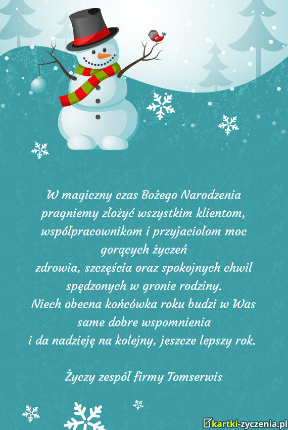 ūyczy zespół firmy Tomserwis - Gotowa Kartka bożonarodzeniowa