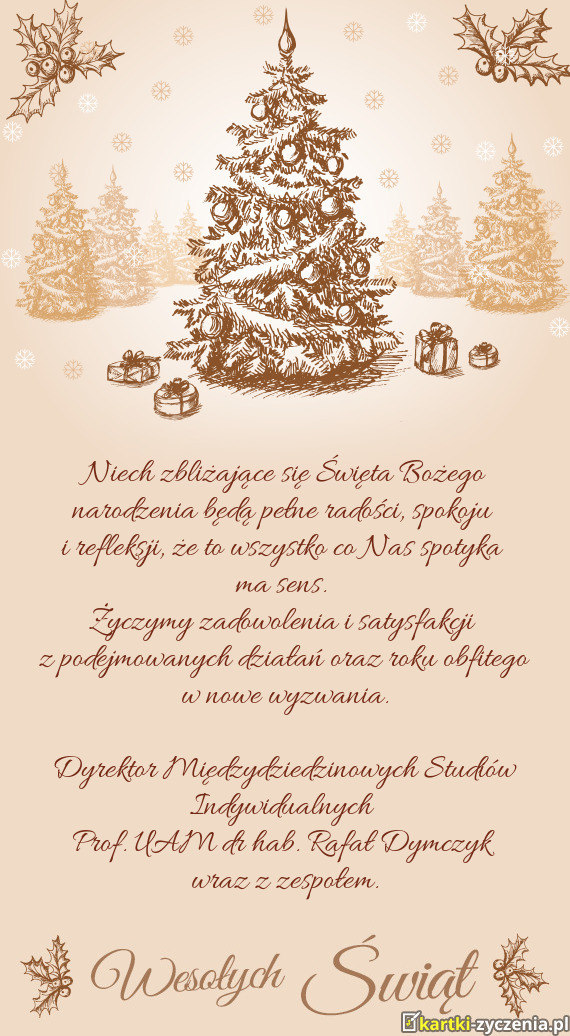 ūyczymy, aby był to czas szczęśliwy w osobiste doznania, spełnił zamierzenia i dążenia zawod - Gotowa Kartka bożonarodzeniowa