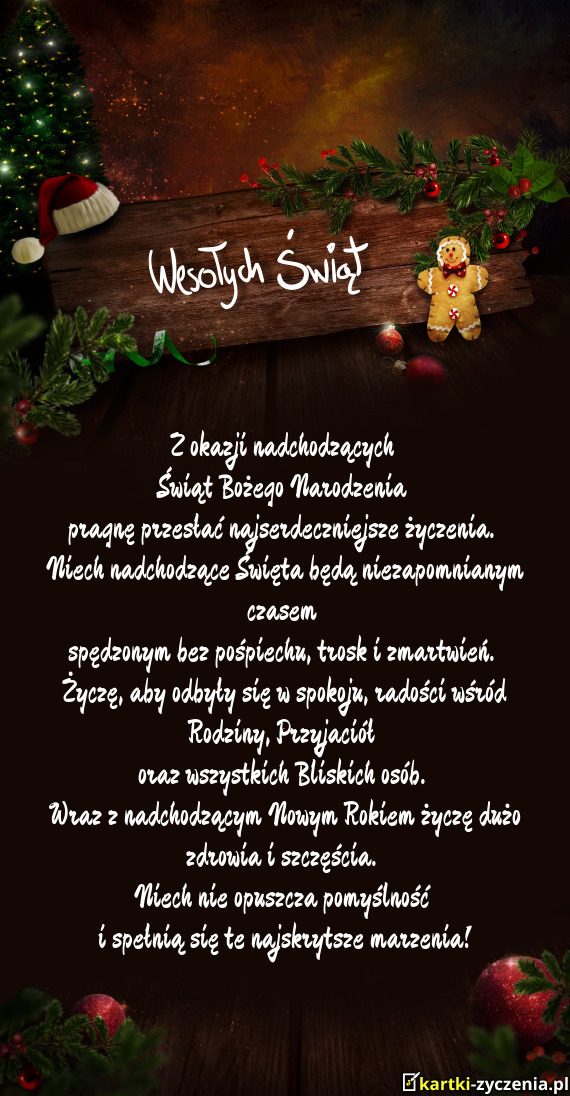 ūyczymy, aby odbyły się w spokoju, radości wśród Rodziny, Przyjaciół - Gotowa Kartka bożonarodzeniowa