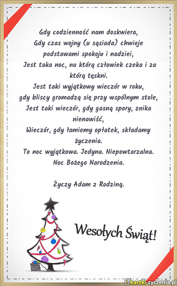 ūyczymy, aby te Święta Bożego Narodzenia były pełne ciepła, spokoju i rodzinnej atmosfery. Ni - Gotowa Kartka bożonarodzeniowa