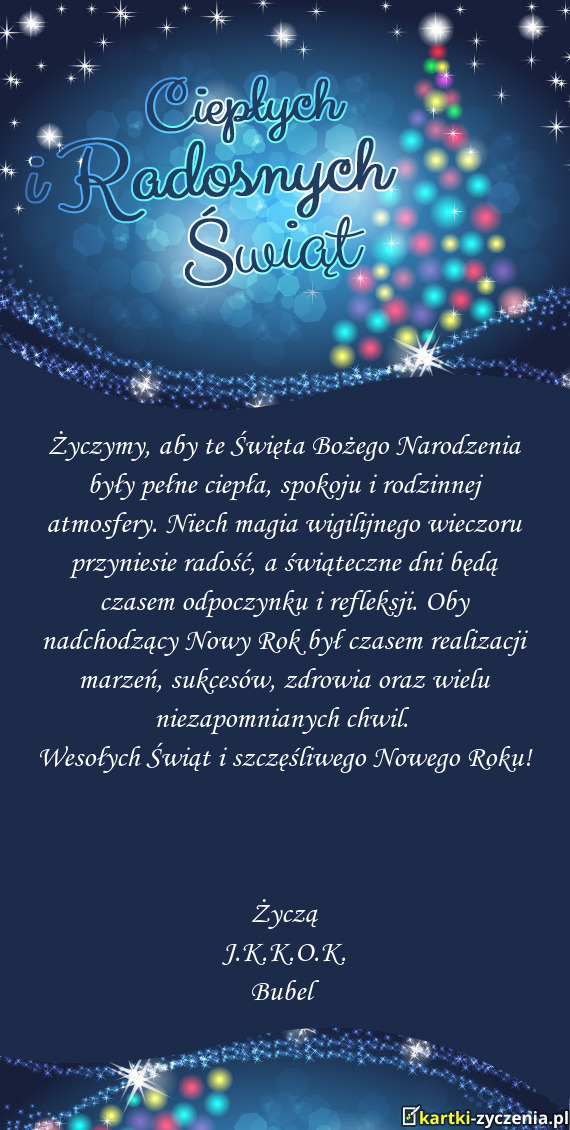 ūyczymy, aby te Święta Bożego Narodzenia były pełne ciepła, spokoju i rodzinnej atmosfery. Ni - Gotowa Kartka bożonarodzeniowa