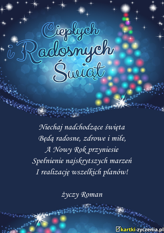 Życzymy Ci, abyś to Boże Narodzenie spędził w atmosferze miłości i wzajemnego zrozumienia z najbliższymi. Obyś nigdy nie tracił wiary w spełnianie swoim marzeń, a każdy kolejny dzień był dla Ciebie niespodzianką i okazją do kolejnych sukcesów i pięknych chwil.