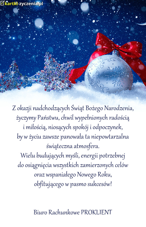 Ŭyczymy Państwu, chwil wypełnionych radością - Gotowa Kartka bożonarodzeniowa