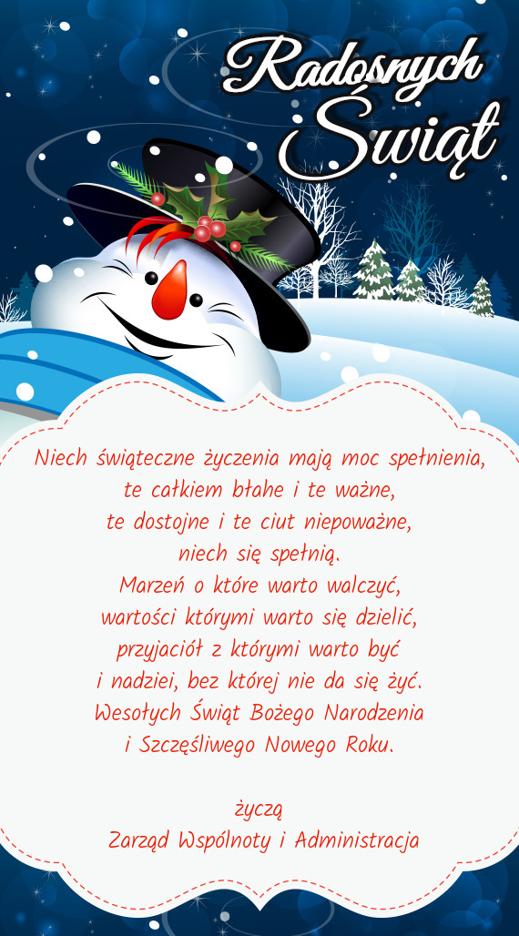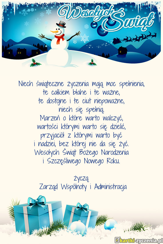 ūyczymy Państwu radosnych Świąt Bożego Narodzenia, pełnych uśmiechu, rodzinnego ciepła, nios - Gotowa Kartka bożonarodzeniowa