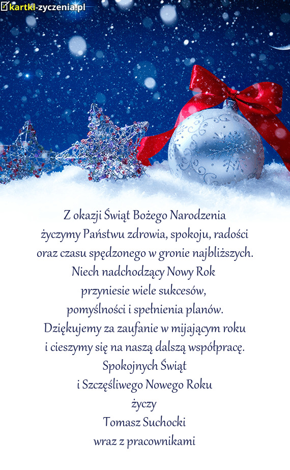 Ŭyczymy Państwu zdrowia, spokoju, radości - Gotowa Kartka bożonarodzeniowa