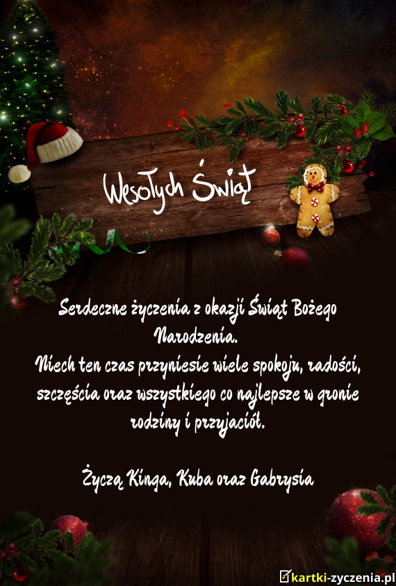 ūyczymy Wam, aby te Święta Bożego Narodzenia były pełne ciepła, spokoju i rodzinnej atmosfery - Gotowa Kartka bożonarodzeniowa