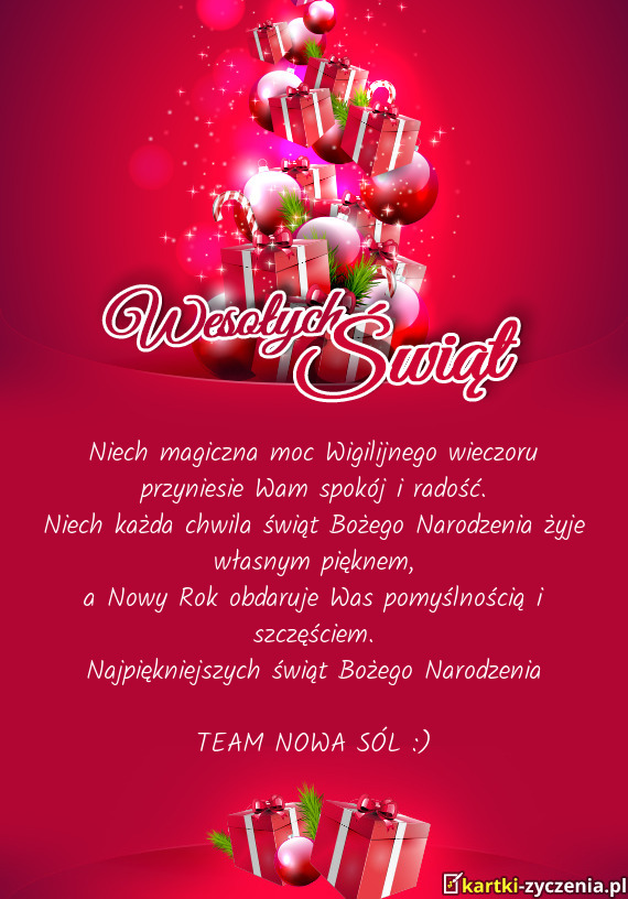 Niech Święta przyniosą Wam spokój ducha, harmonię w sercu i radość z bycia blisko z najbliższymi.