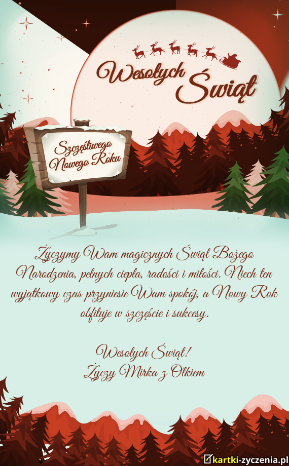 ūyczymy Wam magicznych Świąt Bożego Narodzenia, pełnych ciepła, radości i miłości. Niech te - Gotowa Kartka bożonarodzeniowa