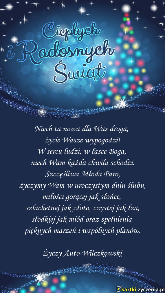 Ŭyczymy Wam w uroczystym dniu ślubu - Gotowa Kartka bożonarodzeniowa