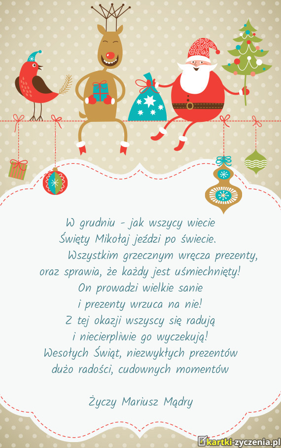 ūyczymy Wam wspaniałych, rodzinnych Świąt, szampańskiego Sylwestra, a w Nowym Roku sukcesów, m - Gotowa Kartka bożonarodzeniowa