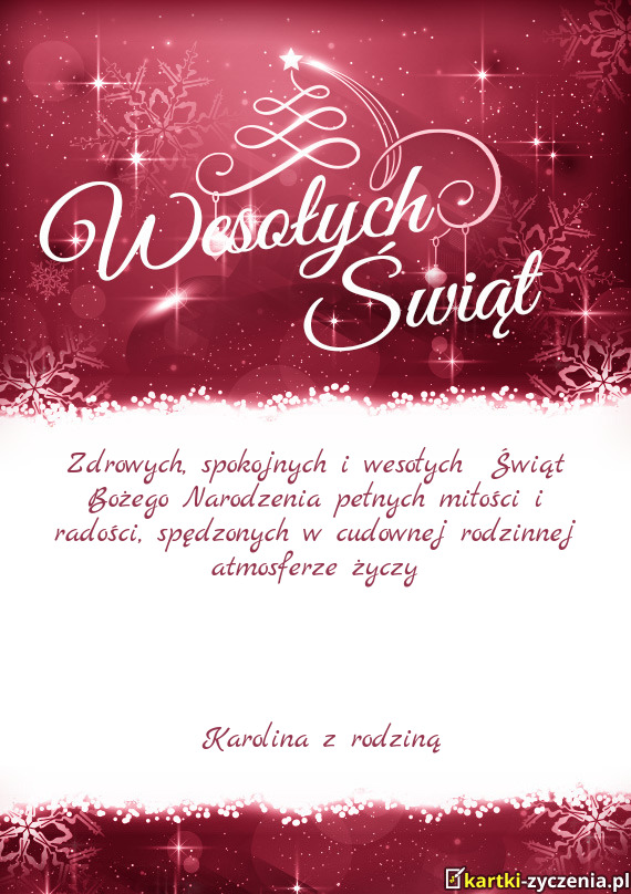 Ŭyczymy wam wszystkim, chwil wypełnionych radością - Gotowa Kartka bożonarodzeniowa