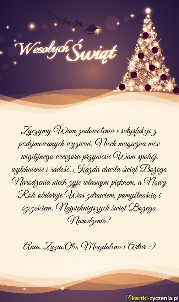 ūyczymy Wam zadowolenia i satysfakcji z podejmowanych wyzwań. Niech magiczna moc wigilijnego wiecz - Gotowa Kartka bożonarodzeniowa
