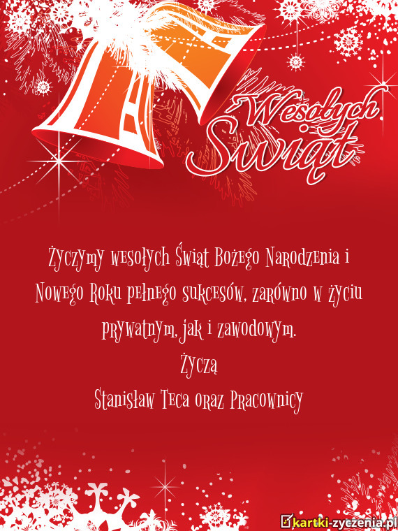Życzymy wesołych Świąt Bożego Narodzenia i Nowego Roku pełnego sukcesów, zarówno w życiu prywatnym, jak i zawodowym.