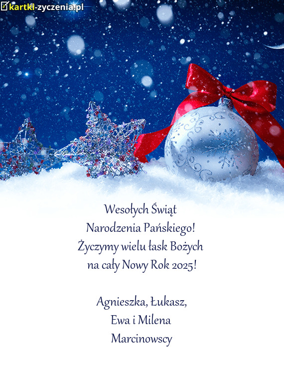 ūyczymy wielu łask Bożych - Gotowa Kartka bożonarodzeniowa
