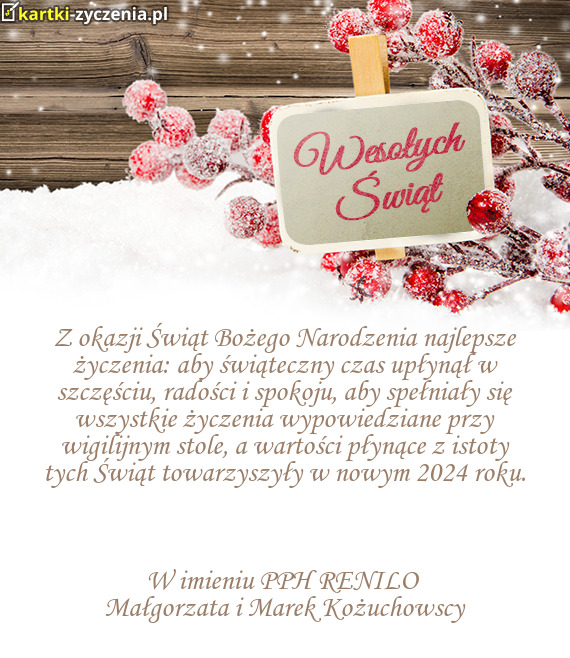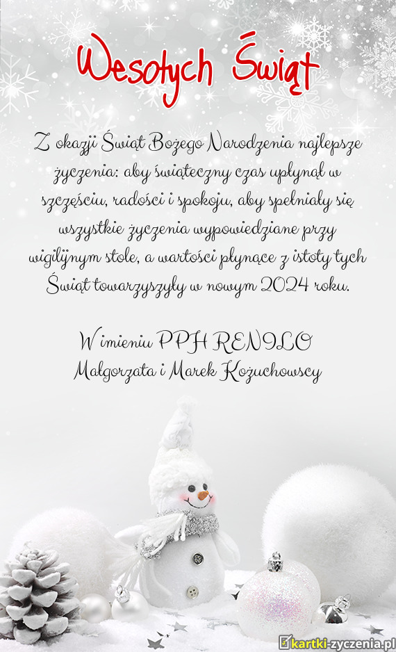 W imieniu PPH RENILO - Gotowa Kartka bożonarodzeniowa