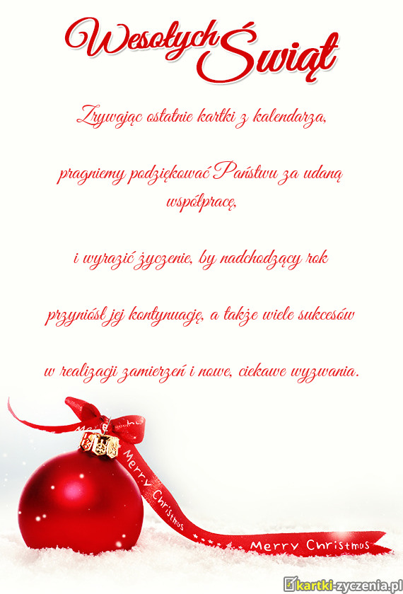 przesyłam życzenia z okazji nadchodzących Świąt Bożego Narodzenia;