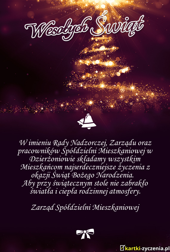 W imieniu Rady Nadzorczej, Zarządu oraz pracowników Spółdzielni Mieszkaniowej w Dzierżoniowie s - Gotowa Kartka bożonarodzeniowa