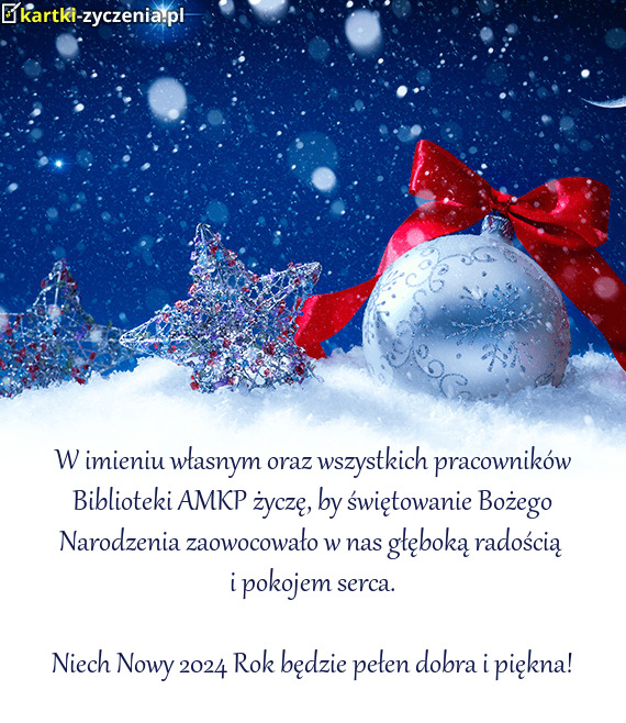 W imieniu własnym oraz wszystkich pracowników Biblioteki AMKP życzę, by świętowanie Bożego Narodzenia zaowocowało w nas głęboką radością