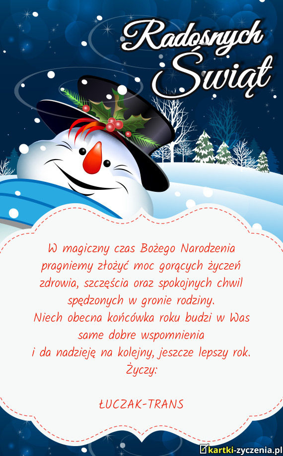 W magiczny czas Bożego Narodzenia pragniemy złożyć - Gotowa Kartka bożonarodzeniowa