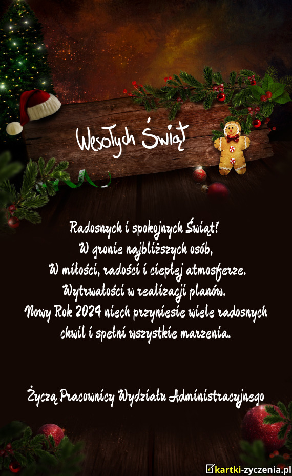 W miłości, radości i ciepłej atmosferze. Wytrwałości w realizacji planów - Gotowa Kartka bożonarodzeniowa
