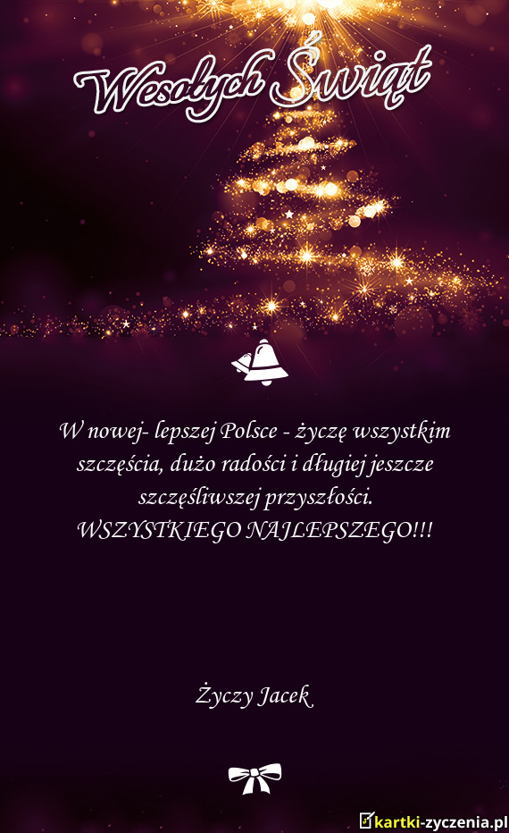 W nowej- lepszej Polsce - życzę wszystkim szczęścia, dużo radości i długiej jeszcze szczęśl - Gotowa Kartka bożonarodzeniowa