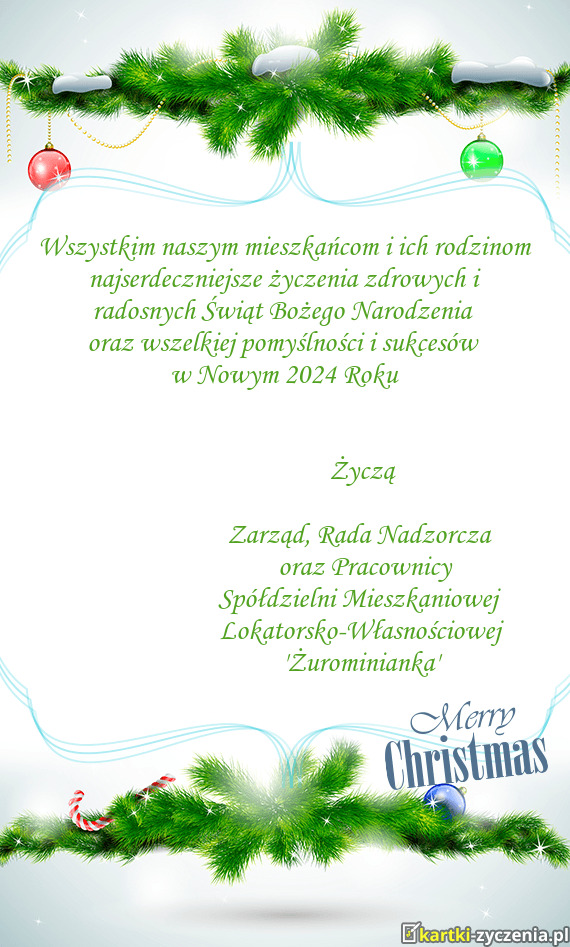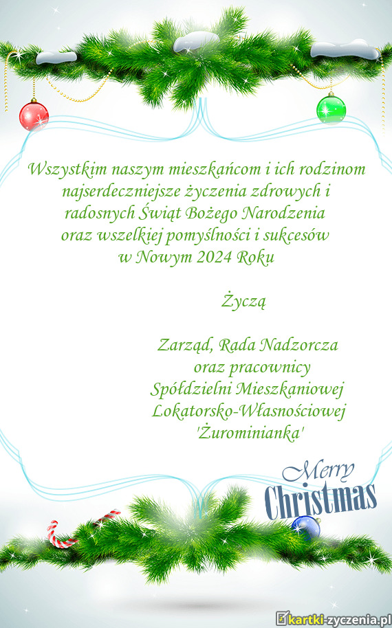 Wszystkim naszym mieszkańcom i ich rodzinom najserdeczniejsze życzenia zdrowych i radosnych Świąt Bożego Narodzenia