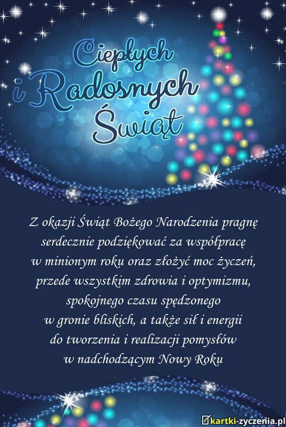 W podziękowaniu za dotychczasową współpracę pragniemy złożyć życzenia - Gotowa Kartka bożonarodzeniowa