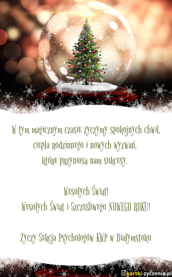 W tym magicznym czasie życzymy spokojnych chwil, ciepła rodzinnego i nowych wyzwań - Gotowa Kartka bożonarodzeniowa