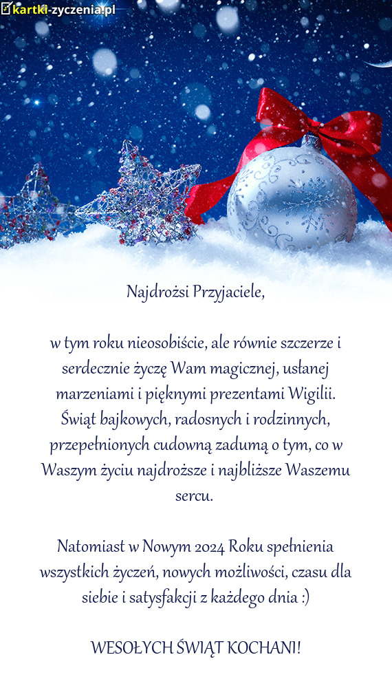 W tym roku nieosobiście, ale równie szczerze i serdecznie życzę Wam magicznej, usłanej marzenia - Gotowa Kartka bożonarodzeniowa
