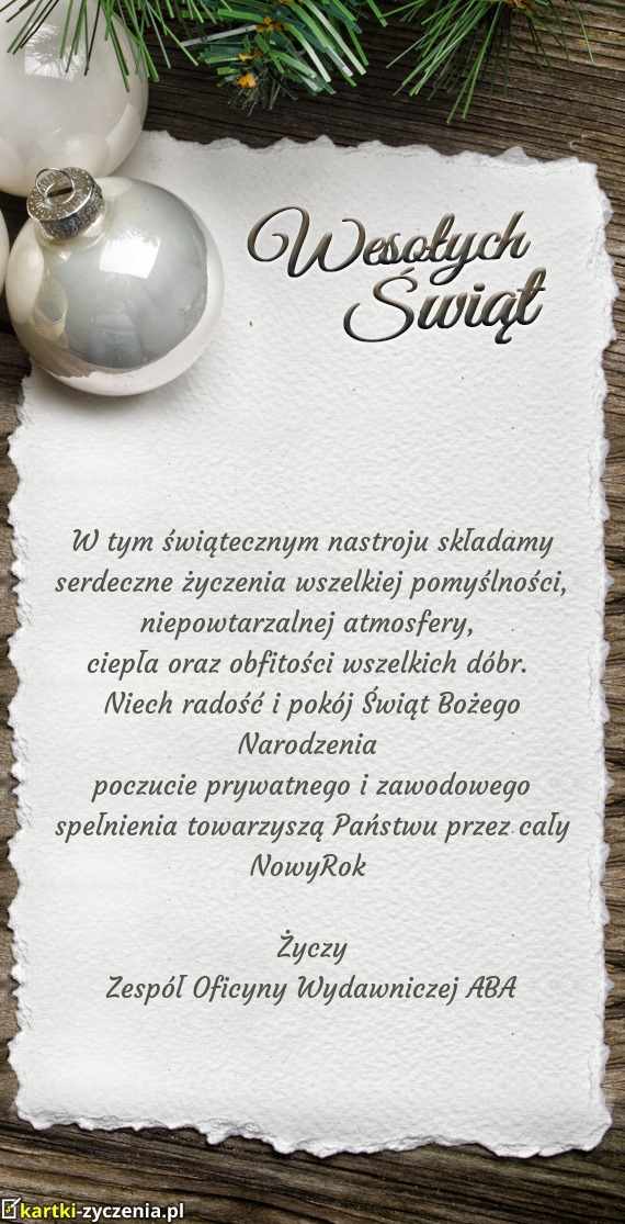 W tym świątecznym nastroju składamy serdeczne życzenia wszelkiej pomyślności, niepowtarzalnej atmosfery,