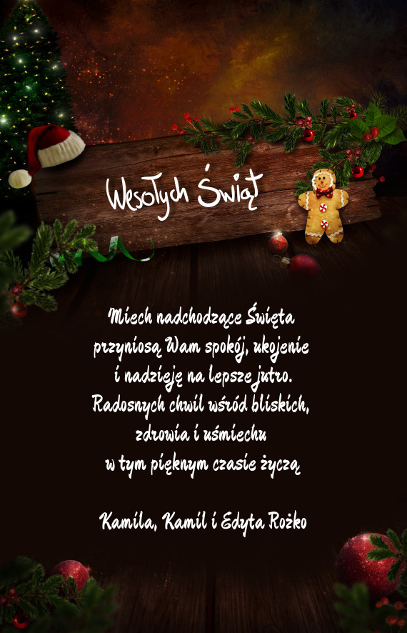 Wesołych Świąt Bożego Narodzenia i Szczęśliwego Nowego Roku - Gotowa Kartka bożonarodzeniowa